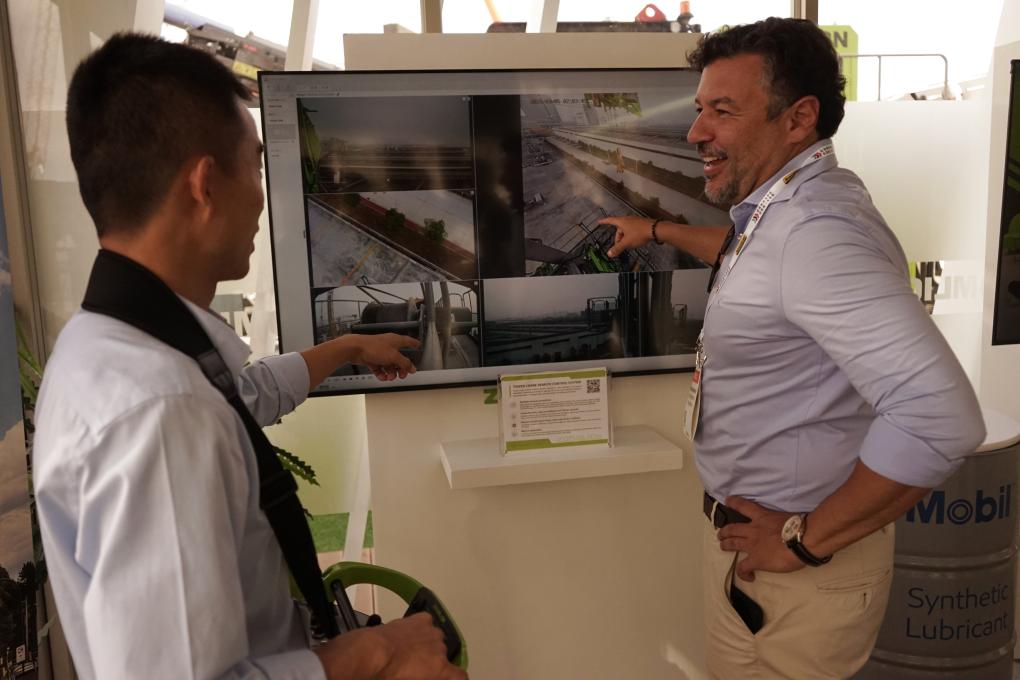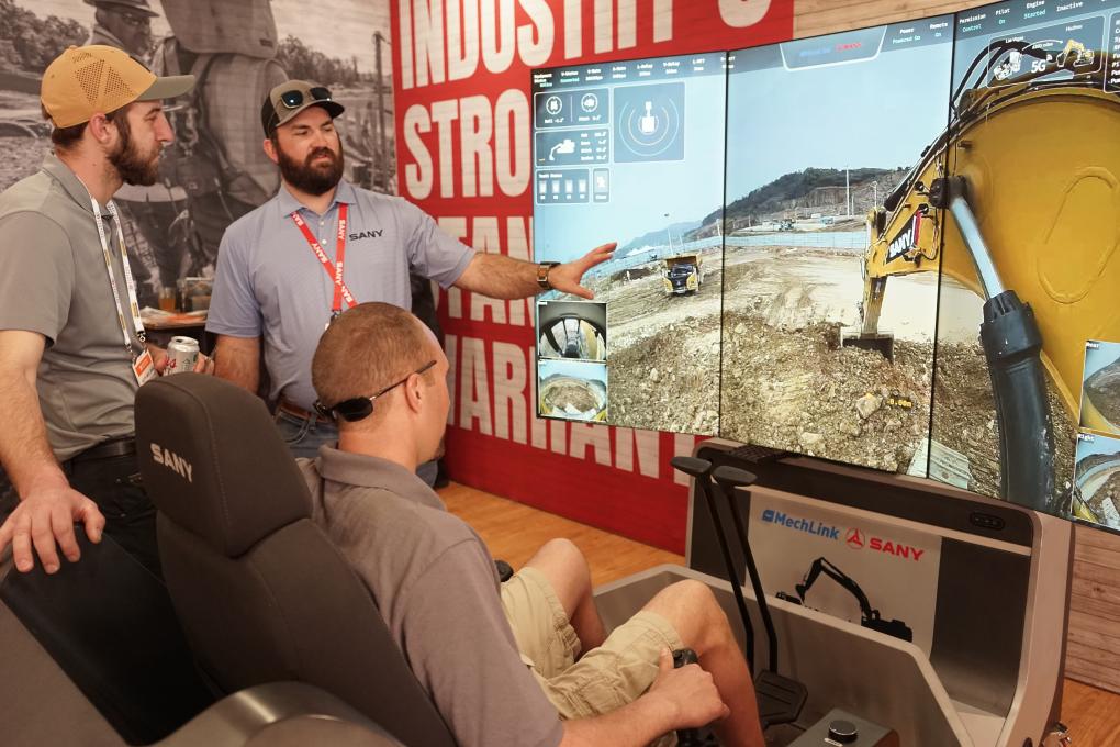 3月4日,在美国拉斯维加斯工程机械展上,参观者了解中联重科的无人化矿山设备系统。新华社发(曾慧摄) 不远处的三一重工展厅,来自加拿大的建筑工人马克·克雷西坐进智能挖掘机器人系统的操作舱,轻推操纵杆,远在浙江湖州矿山试验场的挖掘机铲斗同步起落、回转、挖掘——施工指令通过5G网络和人工智能(AI)算法实时传输。 “我开过挖掘机,但远程操作还是头一回。这样的技术能帮上大忙!”在加拿大艾伯塔省雷德迪尔市一家建筑与工程承包公司工作的克雷西对新华社记者说,在结冰水域施工、污染场地作业或尾矿池周边等高风险场景中,远程操控不仅能让操作人员远离危险区域,显著降低事故风险,也有助于提升作业效率。