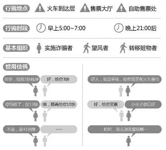 近日,一旅客在火车站等人,这时,一名身穿绿色外套、约40岁的男子走过来问她:“小姑娘,我的钱不够买车票,就差13块钱,能不能借我?”你有遇到过这种情况吗?“三元”诈骗团又出现了! ![]() 事情原委 近日,旅客曾姑娘在杭州东站到达层南2出口等人。这时,一名身穿绿色外套、约40岁的男子走过来问她:“小姑娘,我的钱不够买车票,就差13块钱,能不能借我?”此人说话含糊,带有地方口音,一脸难为情的样子。 曾姑娘问:“你是哪里人?” 中年男子说:“我是安徽过来的,到杭州来转车,但刚好钱不够。” 曾姑娘掏出15块零钱给了对方。但男子接过钱没有离开,反而直接地说:“是73块。” 这时候,一个穿着黑色中长款羽绒外套的女子走过来。她掏出了手机,搭腔说:“我们就差73块钱买车票了。我留下你的联系方式或者加个微信,以后多还你一点钱。”中年男子也随声应和。曾姑娘提议带两人去找警察求助,不想遭到拒绝。 这让曾姑娘起了疑心:“你们车票给我看一下?”两人异口同声地说:“车票丢了。”看曾姑娘没有再掏钱的意思,两人便转身走了。 ![]() 机智姑娘感觉可疑,紧紧跟随骗子 曾姑娘感觉两人很可疑,就悄悄跟随观察他们。果然,在到达层通往地铁站的楼梯处,两人又向一名身穿黄色外套的女生搭讪。 此时,一辆巡逻车从曾姑娘身边经过。她赶紧向车上民警说明情况,民警立刻驱车朝两人方向开去。中年男子看见民警转身跑入地铁站后消失不见,黑衣女子则被截停。 黄衣女生告诉民警,她刚刚从湖北襄阳老家回杭。这两个人开口问她借6块钱,出于好心,自己就想帮助他们,“没想到他们说是46块!我没零钱了,就给了他们100块。那个女的说留我的联系方式。但在输我手机号的时候,我的手机尾号是1,但她打成了0,我说了几次,她还是输错,我就觉得很奇怪。” 随后,民警将黑衣女子带回派出所进一步调查,并请被骗旅客一起协助。最后,中年男子也被抓获,两人被依法处罚。 什么是“三元”骗术? “三元”骗术只是一个代称,他们一般要求“借”3元、13元、43元、73元等,然后配合口齿不清的“口音”来诈骗旅客,借口往往是没钱买票、转车钱不够了等等,利用旅客的同情心行骗。 他们是一群什么样的人? 这群诈骗团伙有组织、有计划,专门在铁路到达层、售票大厅口等地方,拉着一个空的行李箱,装无辜装可怜行骗。 ![]() 骗子团伙一般以女性“出头露面”,拉个旅行箱,出现在人来人往的车站,装无辜、装可怜,开口向路人“借我三元钱”,理由是买票钱不够,差了“三元”。 如果你从口袋里掏出钱,那么你上当了,或者说你上钩了,她立马说是十三元;如果你乖乖地掏出十三元,她马上说“你听错了是差四十三元”…… ![]() 遇到三元骗术怎么办? 铁警提醒:骗子们很狡猾,常常两人一起行动,往往在地铁、铁路出口附近,一人搭讪“借钱”,一人望风,看见民警就跑。 出门在外,谁都有遇到困难的时候,乐于助人是对的!但是,遇到陌生人借钱时,大家一定要加强甄别,不要盲目相信对方,万一遇到类似情况请及时报警。 责任编辑:倪子牮 作者:佚名 来源:不详