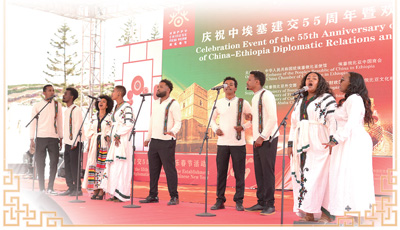 在近日举办的“庆祝中埃塞建交55周年暨欢乐春节活动”上,当地民众合唱埃塞俄比亚传统歌曲。 亚的斯阿莱姆摄 |