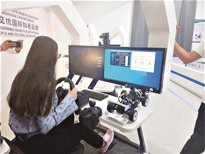 在哈萨克斯坦鲁班工坊,学员正借助辅助驾驶系统学习车辆驾驶。 扎娜尔摄 |