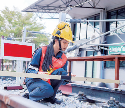 在泰国春武里技术学院内,轨道交通专业学生正在进行测距等实操学习。随着中泰铁路项目的推进,该学院积极与中国对口院校开展高铁技术培训等交流合作。 本报亚太中心分社 普拉维摄 |