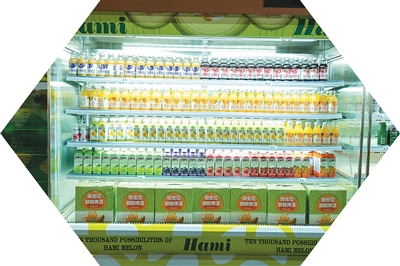 哈密瓜鲜果产业链平台联合推出的哈密瓜果汁、精酿啤酒等产品。 哈密瓜鲜果产业链平台供图