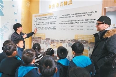 在短视频平台上,吴飞得操着一口地道的上海金山话,讲解着本地风物,让无数网友惊呼:“跟着外国人学起了上海话!”这位“语言奇才”究竟是谁?他与上海方言之间,又有着怎样不解的缘分? 记者驱车80公里,来到上海市金山区张堰镇秦阳村,在一群活泼好动的小学生中间,一眼就找到了人高马大的吴飞得。 知道吴飞得,是因为这位外国青年发布了自己讲上海方言的小视频,“上海各区‘虾’的叫法”“上海话的声调”“哪吒、钟馗用上海话怎么说”……网友留言:“这个外国人方言学得地道、总结透彻。” “南瓜用金山话怎么说?青团、茄子……每一个镇都有不同的说法。”作为志愿者,吴飞得来到村里,给海棠小学的孩子们讲解金山方言知识以及传统习俗。请一位外国年轻人讲中华传统习俗和中国地方方言,有人觉得新鲜,有人觉得不可思议。 “在上大学之前,我就被中文的独特魅力吸引,开始学习中文了。”吴飞得原名费德里克·德马科,因为喜欢中文特别是吴语,便取“吴”为姓,用名字音译“飞得”作名。“恰好赶上阿根廷开始举办汉语水平六级考试,我报名参加,幸运地成为第一批通过考试的人。有人说中文是世界上最难学的语言,我恰恰喜欢这种挑战。”母语是西班牙语、会说多国语言的吴飞得直言对中文的喜爱。 后来,这个土生土长的阿根廷人在布宜诺斯艾利斯与上海姑娘结缘,2018年同妻子来到上海生活。 在阿根廷读本科学的是国际贸易,一旦浸润在了当地方言的环境中,受到激发的吴飞得找到了发自内心想做的事情:深入田间地头、巷陌人家,跟着老人研究上海方言。“我发现,很多语言表达上的特点已经快要失传,甚至80岁和90岁老人说的话都不一样。”吴飞得说。 “区别有这么大?”记者问。 “吴飞得的耳朵特别敏锐,很多细微发音差别我都听不出来。”从小对金山文化和吴方言有浓厚兴趣的金山人、山塘乡邦文史与民间文化研究会会员封烜鑫,丝毫不掩饰对吴飞得语言天赋的佩服。 “过去,金山方言多停留在口头,吴飞得让金山方言变成了文字,他的研究让方言能够更好地传承。”金山区山塘乡邦文史与民间文化研究会刘勤芳的这席话令记者颇为不解:方言变成了文字? “吴飞得是学院派,有系统的专业知识和科学的研究方法。”封烜鑫告诉记者。 “封老师对金山风土人情有很深的了解,他知道很多有趣又有代表性的金山方言中的词汇和表达,我们刚好互补。”吴飞得补充说。 看完吴飞得的小视频,有网友感慨,自己不知不觉跟着外国人学起上海方言来,殊不知吴飞得是上海大学的语言学硕士,研究方向就包括金山方言语音研究,目前正在攻读博士学位。 作为专业研究者,吴飞得与伙伴们记录金山方言的书稿即将定稿,这些年的田野调查结果将呈现在书中。“方言不仅独具韵味,还与农耕文化密不可分,更承载着古老的传统习俗,蕴含了丰富的智慧。我喜欢这些知识,它们都是金山文化的一部分,更是金山文化的根。”吴飞得说。 作为一个有志于研究中国地方方言和文化的外国青年,能够顺利开展研究,还得益于当地人对历史文化传承的日益重视和关注。 不久前,秦阳村村委会旁边建成了清雅简朴的乡音馆,吴飞得等人的研究成果得以在其中展示。 吴飞得还开通视频账号介绍方言,获得了封烜鑫的建议和帮助。“我们一起策划拍摄有关方言的视频。”吴飞得说。 通过这些有趣的小视频,越来越多的人开始关注、了解方言。“虽然喜爱,但我也一度想放弃。吴飞得的出现让我重启了对方言的传承和保护,是他在推着我走。他想看看方言里面藏着什么!”封烜鑫说。 记得几年前,记者刚到上海工作生活时,对上海方言头疼万分,曾经在线自学,当时登录过一个网站叫作“吴语学堂”。如今才知道,这是吴飞得与伙伴制作的免费学习网站。 源自热爱,扎根上海,专注方言研究,吴飞得与志同道合的伙伴开启了乐在其中的探索之旅。临别之际,记者接过吴飞得和当地朋友一同制作的金山小点心,软糯香甜,青翠欲滴。