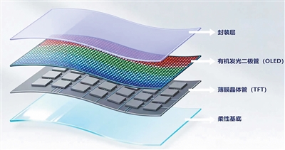 近年来,显示技术加速从“刚性”向“柔性”升级。柔性显示凭借“能屈能伸”的特性,越来越多地应用于消费电子、商业空间、智能交互等领域。近日,中国科学院化学研究所研究团队成功制备出高性能可拉伸高分子发光二极管(PLED),其光电性能和机械稳定性显著提升;不久前,韩国LG显示公司也展示了其可拉伸显示屏原型,可实现约53%的拉伸变形。一系列突破性进展,正为柔性显示的快速发展奠定重要基础。 从可折叠手机到弯曲屏手环,从车载柔性屏幕到大屏户外广告,柔性显示凭借可弯曲、超轻薄、高对比度等特性,突破传统屏幕的物理限制,创造出边缘弯曲、整屏弯曲、折叠与卷曲等新形态。它推动相关产品朝着“万物皆显示”的愿景迈进,正在重塑人机交互的边界,催生规模巨大的新一代产业集群。 柔性屏是如何“炼”成的 柔性屏绝非简单地将传统玻璃屏“掰弯”,要实现这一功能可谓“牵一发而动全身”。它像一个由基底、电子元器件、封装薄膜和盖板等构成的多层“彩虹蛋糕”,当“蛋糕”的每一层都具有柔性后才能实现整体的弯曲和折叠,同时要确保屏幕的显示效果和耐用性。这就需要柔性基底材料、核心电子元器件、结构设计和柔性封装技术等多个领域的协同创新。 首先是柔性基底材料。因为屏幕制作过程中存在多种高温及酸碱环境,基底就需要薄而柔软、耐高温抗腐蚀的高分子材料。目前常用的高分子基底材料包括聚酰亚胺和聚酯材料,可以薄至0.1毫米,能承受高温工艺并经受上万次折叠不变形。 其次是核心电子元器件,包括薄膜晶体管(TFT)和有机发光二极管(OLED)。它们依赖于高性能的电子材料,如氧化物半导体、有机半导体和导电金属/高分子材料等。这些关键材料像一支合作默契的团队:氧化物半导体像电流的“快速传递员”,确保电流在屏幕中迅速流动,使得显示屏响应快速、显示清晰流畅;有机半导体具有“自发光的魔法”,能够自发光,无需背光源,让屏幕更加明亮、节能并能适应弯曲与折叠;导电金属则是“电流的高速公路”,确保电流在各个部分之间畅通无阻。同时,在这些元器件之间还需采用“岛桥结构”设计,每个元器件就像一座小岛,通过弹性结构连接,形成一个灵活的网络。在屏幕弯曲时,这些元器件能够有效释放形变产生的压力和应力,以保持显示屏的完整性和功能性。 最后是封装技术。这是保护柔性显示屏免受外界环境(如氧气和水汽)影响的关键。理想的封装材料需要具备轻薄、柔韧的特性,同时提供优异的防潮、防氧化能力,以保护显示屏内部的有机元器件不受损害。为此科研人员开发出多层复合封装,甚至探索自修复涂层,使柔性屏在保持柔性的同时大幅延长寿命。 应用场景拓展至多领域 目前,柔性显示的全球市场规模持续扩大。据相关统计,2024年全球柔性有源矩阵有机发光二极管(AMOLED)面板出货达6.31亿片,占手机屏幕市场的42%;预计到2031年,柔性显示市场规模将超过1730亿美元,年复合增长率高达34.3%。目前柔性显示技术应用已逐步拓展至智能终端、可穿戴设备、汽车与交通、医疗健康以及公共服务等多个领域。 在智能终端领域,柔性显示正持续丰富产品形态。2025年,华为公司发布全球首款三折叠笔记本,展开后屏幕可达18英寸,可实现大屏办公与便携收纳轻松切换。三星公司正在研发的卷轴屏手机,屏幕可由常规尺寸拉伸至12.4英寸,将拓展“手机—平板”的跨界体验。相比早期曲面与折叠屏幕,新一代柔性智能设备在尺寸、分辨率与耐用性上全面跃升。 在可穿戴设备领域,柔性屏让产品更贴肤、功能更多样。2020年,华米科技与京东方联合推出弯曲屏手环,采用环绕手腕的弧形屏幕,让健康、运动数据一屏尽览。未来,可伸缩显示屏还有望嵌入智能衣物,实现健康数据实时可视化。从“只能读数”到“全面交互”,柔性屏正在不断提升佩戴舒适度与信息承载量。 在汽车与交通领域,柔性显示正在重塑人车交互界面。2022年,奔驰VISION EQXX概念车发布,配备47.5英寸一体化柔性OLED中控屏,分辨率更高、功耗更低。宝马、奥迪等也在高端车型配备柔性OLED仪表盘和娱乐屏,实现动态显示与个性化交互。京东方自2020年起量产车载柔性屏幕,并与蔚来、小鹏等车企合作。相比传统液晶显示,新一代车载柔性屏尺寸更大、能效更优,且可按场景弯曲。 在医疗健康领域,柔性显示正向临床与家庭场景落地。日本印刷公司曾展出搭载柔性屏的健康贴片,可实时显示心率、血氧等参数。2021年,京东方推出柔性可穿戴医疗终端,对接远程监测平台,数据即时可视。近年来,便携超声设备也引入柔性OLED,影像更清晰,能耗更低,方便医生移动查房。当前,柔性医疗显示屏在清晰度、便携性与可靠性上均有明显进步。 在公共服务领域,柔性显示开始大范围走进公共空间。新一代大尺寸柔性OLED屏在亮度、寿命和耐弯折性能方面均优于早期液晶显示屏,公交站、商场橱窗、展览展台正逐渐成为柔性显示的新“画布”。这些大尺寸柔性OLED屏可以贴合墙面和立柱,打造沉浸式广告。2024年,巴黎奥运会场馆采用柔性透明显示屏,用于赛事信息播报与互动导览。 本征柔性有望带来新突破 当前,主流柔性屏仍依赖外部结构实现形变,不可避免地面临拉伸、扭曲易碎和显示分辨率损失等挑战。随着智能家居、物联网、虚拟现实等新兴技术的发展,对显示器
