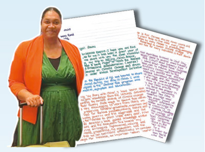 亲爱的叶莲娜·弗朗西斯科·索鲁: 对我而言,2025年是格外美好的一年。我迫不及待想和你分享我在中国研修班的难忘见闻与收获。 通过研讨交流,我深入了解了中国应对气候变化的现状与解决方案,备受鼓舞。中国高度重视原始林草地保护与生态系统修复,始终致力于平衡生态保护与减贫发展的关系,还通过多种举措调动全民植树造林的积极性。 我还前往山东省临沂市,考察了多个地方。在木材加工企业和木业展上,我直观了解了木材原料的加工流程与家具制造工艺;在银雀山汉墓竹简博物馆,我探究了中国文字从古至今的演变脉络;在费县手绣非遗传承中心,我惊叹于刺绣艺术在现代的创意应用;漫步琅琊古城,传统服饰与文艺表演尽显古典韵味;驻足齐长城遗址,世界文化遗产的恢宏气势令人心潮澎湃。 中国与斐济虽在文化上存在诸多差异,但两国始终保持良好的双边关系。今年9月,两国在斐济成功举办了建交50周年纪念活动,见证了两国友谊的深厚积淀。 能在此次研修中与你相遇,我倍感幸运。我也很高兴能与中国友人及各国学员交流彼此的文化,结下了真挚的跨国友谊。在中国的这段时光里,我时刻能感受到热情周到的服务与友好包容的氛围,内心满是愉悦与温暖。衷心祝愿中国继续繁荣昌盛,始终与世界各国和睦共处、携手共进。 亲爱的朋友,祝你新年快乐,期待与您再次在中国相会! 约瑟芬·马卡·武尼塞 信件背后 这是斐济国防和退役军人事务部军官约瑟芬·马卡·武尼塞写给在华研修期间认识的好友的一封信。2025年9月,她参加了由国家林草局管理干部学院承办的“全球发展倡议下应对气候变化与绿色低碳发展专题研修班”,与来自密克罗尼西亚、南非、埃及等国的38人齐聚中国。在此次研修班上,约瑟芬参加了专题讲座、座谈交流和外业考察,不仅了解了中国原始林草地资源保护利用成果和应对气候变化的经验,还领略了中国齐鲁大地独具特色的历史文化。她还和中国人以及其他国家学员一起交流各自国家的文化,结下了真挚的跨国友谊。 (本报记者贾平凡翻译整理)