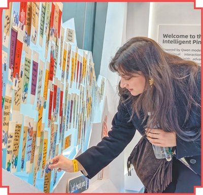 参加米兰冬奥会的运动员在冬奥村智能徽章交换站留下新春祝福。 环球时报记者 陈 涛摄