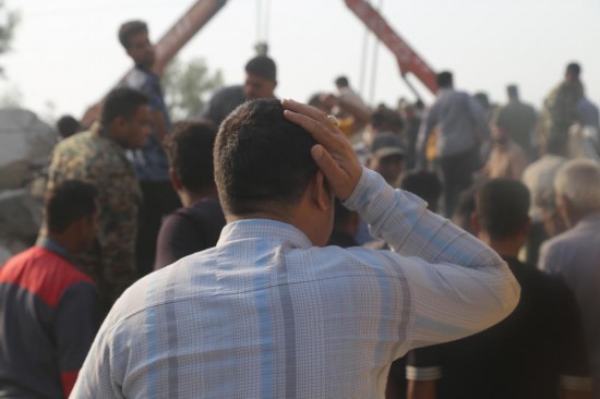 2月28日,在伊朗南部米纳卜市被袭击的小学,救援人员和当地居民试图从废墟里营救伤员。