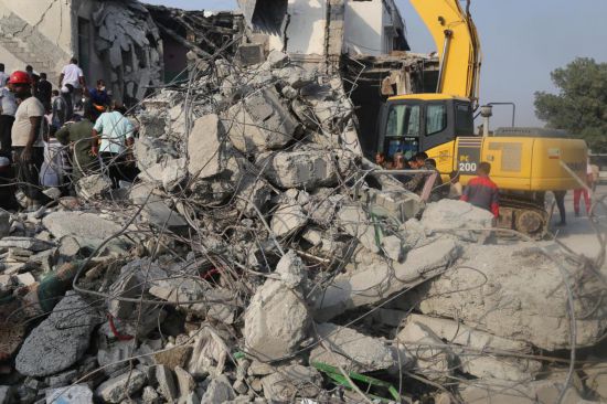 2月28日,在伊朗南部米纳卜市被袭击的小学,救援人员和当地居民试图从废墟里营救伤员。 作者:佚名 来源:不详