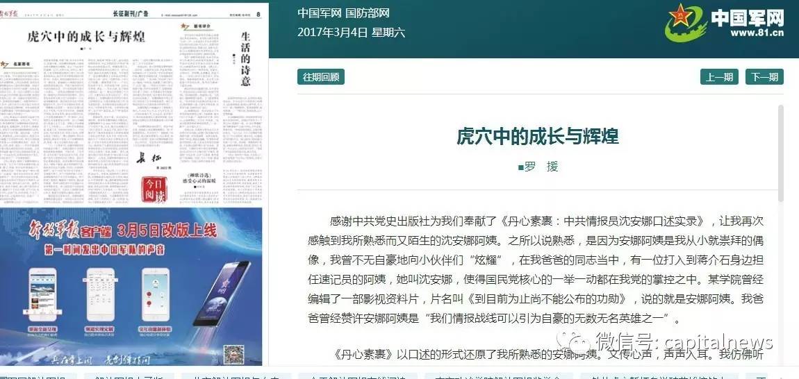 原标题:说起这位女情报员,铁血少将罗援曾“炫耀”曾落泪 去年南海仲裁结果公布后,一位军事专家连夜撰文强硬表态“老祖宗给我们留下的祖产,一份都不能丢”,让人记忆犹新。 没错,这就是小伙伴们熟悉的罗援少将。谈及军事问题,他素以犀利著称。而每当谈到这样一个人,他的文字言谈,则充满了温情。 ![]() 今日的解放军报,刊发了罗援少将的文章《虎穴中的成长与辉煌》,追忆我党著名的女情报员沈安娜。文中,他亲切地称沈安娜为阿姨。 ![]() 关于沈安娜的事迹,长安街知事APP此前曾详细地介绍过,她在蒋介石身边潜伏14年从未暴露,使得国民党核心的一举一动都在我党的掌控之中。 曾经有一部影视资料片《到目前为止尚不能公布的功勋》,很多年长一些的军人都看过,片子说的就是沈安娜。 罗援少将多次撰写过追忆沈安娜的文章,特别是2010年沈安娜去世时,他在追忆文章中深情地写道—— 沈安娜阿姨的告别仪式在八宝山革命烈士公墓举行,据说备具哀荣。可惜,那天我在兰州讲课,没能赶上送安娜阿姨最后一程。我含泪写了一副挽联,表达我对我亲爱的安娜阿姨的崇高敬意:“冰清玉洁 独立寒秋傲霜雪;丹心素裹 智闯虎穴斗敌顽 ”。 罗援少将之所以亲切地称呼“沈安娜阿姨”,因为沈安娜是他“爸爸的同志”,他这样介绍—— 安娜阿姨是我从小就崇拜的偶像,我曾不无自豪地向小伙伴们“炫耀”,在我爸爸的同志当中,有一位打入到蒋介石身边担任速记员的阿姨,她叫沈安娜。 沈安娜与罗青长合影事实上,罗援的“爸爸”罗青长,与沈安娜阿姨一样,都是中共隐蔽战线的优秀代表。罗青长长期在周恩来身边工作,抗战时期曾打入胡宗南部队从事地下活动,后来担任过中共中央调查部部长。他曾经赞沈安娜是“我们情报战线可以引为自豪的无数无名英雄之一”。 在当下这个时点,再度纪念沈安娜,源自中共党史出版社的新书《丹心素裹:中共情报员沈安娜口述实录》,该书以口述的形式披露了许多闻所未闻、鲜为人知的细节故事——沈安娜的身世、追求、爱情、历险、磨难、愉悦,所有的家国情怀都全景式地跃然纸上。 早在一个月前,这本书的出版还引起了一场有关“真实隐蔽战线工作如何做?”的讨论。罗援和沈安娜之女华克放、童小鹏之子童丹宁、吴克坚之子吴兆力等数位早期隐蔽战线前辈的后代都前去参加。 罗援(右二)现场,罗援少将说到现在的谍战大片充满着色情、血腥、暴力、荒诞、低俗,一律格式化的“手枪+美女”,“拳头+枕头”。而《丹心素裹》是一部实实在在的信史,真实地描写了一位中共情报员的成长历程。 就在几天前,大家还在为罗援将军提出的反制萨德十策拍案叫好,如今马上随他追忆起令人动容的女英雄,这两者之间其实毫无违和感,因为当下这个时代,更需要英雄。 英雄是什么?上个月刚刚去世的110岁老人黄慕兰,就是一位与沈安娜齐名的女英雄。她一生历经艰险、磨难与误解,却从没有丧失对党的忠诚与信仰。我们纪念黄慕兰、沈安娜这样的英雄,就是要学习他们身上的忠诚与信仰。 《丹心素裹》一书中有这样一段催人泪下的描述: 沈安娜凭其娴熟的速记技艺、良好的人际关系和不卑不亢的人品,伴随在蒋介石、宋美龄等国民党高官达贵左右。而与此同时,她的生活却陷于窘境。 丈夫和战友华明之写给友人的一封信中如是写道:“安娜失眠,半夜之后不能醒,一醒就得看天亮……产后已经是两个足月,仍然衰弱不堪,月前又发胃病、便血……奶水不够,母子俩的泪混流在一起……薪水已经借到三个月之后,大量的支出实在无法应付”。在这种情况下,安娜阿姨夫妇仍然坚守着自己的理想信念,无怨无悔地为党工作。 什么是忠诚?什么是信仰?在军改的大背景之下, 在肃清郭徐流毒的大环境之下,英雄的榜样作用最有说服力。 本文来自微信公众号长安街知事 作者:佚名 来源:不详