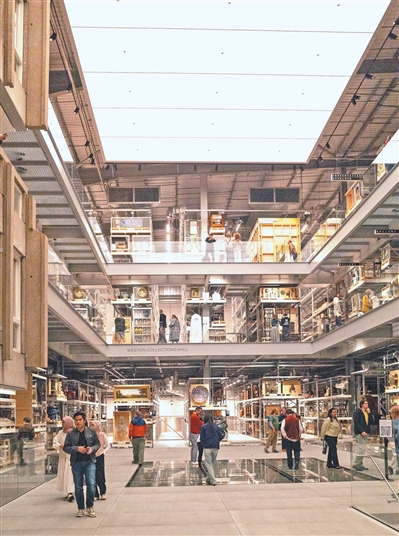英国维多利亚与阿尔伯特博物馆旗下的新馆——东区仓储博物馆日前正式对公众开放。这座博物馆坐落在伦敦东部的伊丽莎白女王奥林匹克公园内,是全球首个开放式仓储博物馆。它通过创新展陈和互动方式,让文物走出展柜,与观众近距离接触,为全球博物馆发展探索了一条新路径。 本报记者近日到东区仓储博物馆实地探访。该博物馆外观极具现代气息,浅灰色铝板幕墙搭配局部开窗设计,增强了建筑的通透性。线性采光系统的运用,巧妙引入自然光,营造出明亮且开放的氛围(见图,本报记者许立群摄)。展厅分为四层,高20米,面积大约1.6万平方米(相当于38个标准篮球场),大跨度钢桁架与通高立柱系统的应用,形成了非常开阔的展示平台。展厅中央的100多个模块化展示装置采用可移动轨道系统,灵活的货架布局能更好满足多样化的策展需求。 不同于传统博物馆,参观者在东区仓储博物馆不仅能自由探索展区,还能通过预约服务近距离观赏特定藏品,实现与艺术品的深度互动。工作人员告诉记者,东区仓储博物馆共有约25万件珍贵藏品,包括建筑残件、绘画、雕塑、时装、珠宝、摄影作品等门类,且藏品定期更新。在博物馆内,公众能获得前所未有的观展体验:行走在透明玻璃栈道上,下面是17世纪印度莫卧儿帝国阿格拉浴场的精美石柱;抬头仰望,毕加索为芭蕾舞剧创作、因尺寸过大而尘封百年的巨幅舞台布景《海滩上奔跑的两个女人》高悬空中。 展柜的陈列同样别具匠心。16世纪欧洲贵族精致的蕾丝领饰与上世纪70年代英国朋克乐队被撕破的T恤衫相邻摆放,这种跨越时空的并置,打破了传统博物馆按年代或流派分类的常规,带来新奇的观察视角。馆内有一块三层楼高的混凝土残墙,源自伦敦东区被拆除的罗宾汉花园住宅区。艺术家将老居民的口述故事投影其上,使冰冷的建筑承载起鲜活的社区过往,成为城市历史独特的见证者。 该博物馆还提供了“订阅展品”服务。公众可以通过官网预约想要参观的藏品,无论是中世纪的泥金装饰手抄祈祷书,还是流行巨星穿过的舞台服装,都有机会近距离观赏。在约定时间,管理员会戴上手套,将藏品从库房取出,在特设的研究室为预约者进行一对一展示与讲解。此外,博物馆还开放了修复室,参观者可以透过观察窗,观看专家们用精湛技艺修复破损手稿的全过程。正如该馆副馆长蒂姆·里夫所说:“我们就是要拆掉围墙,把博物馆后台变成公共剧场。” 东区仓储博物馆旨在打破博物馆的围墙,将藏品转化为可探索、可对话的活态文化。英国艺术评论家乔纳森·琼斯评价说:“东区仓储博物馆颠覆了博物馆的传统形象,是一次博物馆理念的革新尝试。它将浩瀚藏品数字化、将神秘库房公开化、将修复技艺透明化。在这里,你感受到的不是距离,而是连接。它提醒我们,博物馆的本质是关于人与物的对话,关于我们共同的文化记忆。”英国《金融时报》建筑评论主编埃德温·希思科特认为,仓储博物馆的尝试是否成功,还需要时间和大众的观展体验来验证。 (本报伦敦7月9日电) 《 人民日报 》( 2025年07月10日 17 版) 作者:佚名 来源:不详