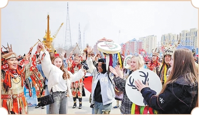 中国地图雄鸡鸡冠上最东端的“小点”,就是有“华夏东极”之称的黑龙江佳木斯抚远市。这里位于黑龙江、乌苏里江交汇处,是中国春分至秋分每天最早看到太阳升起的地方。 抚远与俄罗斯远东第一大城市哈巴罗夫斯克隔黑龙江相望,航道距离仅65公里。一条界江,连同它承载的文化印记与生活习俗,将两国人民紧密相连,绘就一幅跨江文化交融图景。 “喊江节” “开江啦!开江啦……” 今年4月12日上午9时,佳木斯市松花江畔,数千名游客站在江边齐声高喊。大大小小的碎裂冰块,与人们的欢呼声一道卷入激流,奔腾而去。 50位赫哲族表演者手持鹿皮“神鼓”,以取自松花江冰裂声波的鼓点节奏,吟唱开江祭词,将沉睡了一个漫长冬季的江水唤醒。 近千年来,当江面之下的冰裂声变得密集,世代居住在黑龙江、松花江、乌苏里江江畔的赫哲族人便吹响了春之号角。 “江开,渔者祭以豕酒,然后下网。”清代《宁古塔纪略》如此记载。赫哲族先祖在此渔猎生息,认为“江神”主宰一年的风调雨顺、鱼群丰歉,在开江下第一网前必举办隆重的祭祀祈福仪式,求得新岁的吉祥安康。 开江习俗循古例传承至今,成为一年一度的“喊江节”。这个节日被视为春天的开始,标志着江河解冻,渔民可以开始捕鱼。如今,“喊江节”既是融合了少数民族独特渔猎文化的盛典,也是人与自然的对话,吸引了大量俄罗斯游客观摩参与。2024年的“喊江节”共有1万多人齐声高歌《喊江》,创下“最多人参与的电台直播合唱”的吉尼斯世界纪录。 俄罗斯游客安德烈和尤莉娅用手机拍摄了今年的开江盛况。他们来自哈巴罗夫斯克市,专程到这里观看“喊江节”。“喊声震耳欲聋,好像在和江水对话,非常震撼!”安德烈说,“回家后我把视频播放给亲友看,让他们感受一下这里的独特文化。” 俄罗斯画家伊万·季托夫错过了“喊江节”,但他在“东极国际墙绘艺术节”的墙面上,绘出熊与鲟鳇鱼,表达对抚远的热爱。“熊和鲟鳇鱼是抚远市的吉祥物,象征着黑瞎子岛和鱼文化,而熊在哈巴罗夫斯克也很受欢迎。”他说,“很高兴用画表达俄中友好主题。” 在抚远市的迎宾路上,和伊万一样,30余名中俄艺术爱好者,共同在42面4.5米宽、2米高的墙体创作,绘就了一道呈现中俄友好的多彩艺术长廊。 食江味 抚远原名“伊力嘎”,赫哲语意为“金色的鱼滩”。当地盛产百余种鱼类,以俗语“三花五罗十八子七十二杂鱼”一说概之。依江而居的抚远人,小朋友“拿鱼当零食”,大人们“无鱼不成席”,生活和“鱼”紧密网织在一起。 俄罗斯游客莉娜经常乘客船从哈巴罗夫斯克市前来,是抚远的常客。她的东北话张口即来:“坐船过来‘嘎嘎方便’,溜溜达达还能看看黑龙江两岸风光。”两地明水期客运航线开通之后,她每个月都往返几次,“就跟串门一样”。与她一样来抚远的外国游客,总会品尝一些当地特色的“鱼”:“拉铺特克”——生鱼片,“塔拉克”——拌菜生鱼,“塔斯罕”——鱼松,“苏拉克”——冻鱼片……这些有赫哲族印记的鱼类菜肴,生动诠释着“靠水吃水”的渔民饮食。 要想深度感受抚远的鱼文化,外国游客的打卡地之一,就是拥有百年历史的东极鱼市。东极鱼市是中国淡水鱼产品主要集散地之一,短短200米的路上,密布着超过60家鱼行,销售多达105种淡水鱼,每天从这里发往各地的鱼超6万公斤。 清早,市面就摆出琳琅满目的自黑龙江、乌苏里江捕捞上来的新鲜江鱼。从重达二三百斤、江水养殖的鲟鳇鱼,到有成人胳膊长的白条鱼和巴掌大的鳑鲏,无论是为当日餐桌寻觅食材的本地人,还是猎奇长见识的游客,总能被活蹦乱跳的各色活鱼吸引目光。 在经营20年的鱼行摊位上,店主李春艳正麻利地将鳌花鱼和鲤鱼打包发货。“保证72小时送达全国各地,开箱依然新鲜。”据她介绍,每年端午节、中秋节前后是销售旺季,一大早从黑龙江捞出新鲜的江鱼,下午2点就能在摊位销售,一天最多能卖出500斤。“旅游旺季,经常有外国游客拍照打卡,他们鱼文化没有中国丰富,看到这么多品类的鱼都非常感兴趣。” 鱼市两公里外的三江自然生态馆内,中国冷水鱼博馆也详细展示着这座城市的鱼文化。 “这里是国内唯一针对黑龙江、乌苏里江流域水生物、生态环境进行主题展示的鱼博馆,平均每年接待上万名俄罗斯游客。”鱼博馆负责人腾培东向记者介绍,旅游旺季,每天都有俄罗斯旅行社带团来这里参观,“他们往往头一回一次性见到这么多淡水鱼展示,近距离对中俄界河中的鱼类有直观了解,并且了解赫哲族的生活、渔猎习俗,总能尽兴而归。” 护江鸟 夏季清晨,当第一缕阳光穿透黑龙江上的薄雾,中国陆地领土便迎来了新的一天。 黑龙江江面上,跨国“早班机”已经迎着朝霞起飞——成群的白鹭从俄罗斯境内的巢穴振翅而起,掠过界江,来到中国一侧的湿地,开启一日的觅食。 在中俄边境,很多鸟儿白天到中国一侧觅食嬉戏,晚上在俄罗斯一侧休息。不分国界的鸟类栖息地,是中俄共同守护的生态绿地。 “从前,这里鸟的数量可不像现在这么多。”黑龙江三江国家级自然保护区的抓吉管理站,保护区管理局科研科科长赵琬婧介绍,2001年三江自然保护区首次与俄罗斯大赫黑契尔国家自然保护区签署联合保护协议,2015年与俄罗斯远东哈巴罗夫斯克边疆区自然保护区及俄罗斯国家公园联合管理局签署联合保护协议,