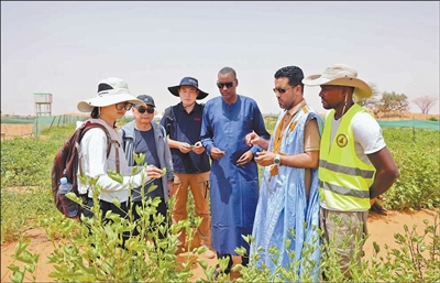 从毛里塔尼亚首都努瓦克肖特出发,驱车沿N3国道向东行驶约一个半小时后,戈壁荒漠中出现一片生机盎然的绿色园区。这里是中毛共建的中非绿色技术公园项目。双方在防治荒漠化、改善民生、培养技术人才等方面积极探索,助力毛里塔尼亚应对自然环境和气候变化挑战,为非洲绿色发展提供新示范。 “在沙地里种出了蔬菜,中国科学家好样的” 走进园区,一垄一垄的苏丹豆、茄子和西红柿已经采收完毕,甜瓜和西瓜已有拳头大小。再往里走,等待移植的阿拉伯金合欢树苗、珍珠粟、埃及酸叶木苗郁郁葱葱。微风吹拂,幼嫩植株轻轻摇摆,散发出淡淡清香。 “去年我们收获了900公斤左右的蔬菜水果,免费提供给周边15个村庄的约6000名村民。村民称赞,我们在沙地里种出了蔬菜,中国科学家好样的!”“非洲绿色长城”毛里塔尼亚国家署副主任马哈茂德·阿卜杜拉赫曼说。 为抵御撒哈拉沙漠南侵威胁,包括毛里塔尼亚在内的11个撒哈拉以南非洲国家制定了“非洲绿色长城”计划——建设一条宽15公里、长度超过7000公里的森林防护带,通过生态可循环的方式阻止萨赫勒地带的荒漠化进程,破解撒哈拉沙漠以南乃至整个非洲干旱地区的土地退化、荒漠化等问题。 中非绿色技术公园项目由中毛双方共同实施,中国科学院新疆生态与地理研究所(以下简称“新疆生地所”)提供示范区建设与后续技术支持。项目占地4公顷,主要涵盖外围防沙阻沙区域、经济果林区、沙土蔬菜种植区、牧草种植区及家禽养殖区,是中国科技部重点研发项目“非洲绿色长城重点区域沙漠化防治实用技术合作研究与示范”的具体实践。 据介绍,自2017年中国科学院与毛方签署首份合作协议,参与推动“非洲绿色长城”计划以来,中非绿色技术公园项目已在毛里塔尼亚取得一系列显著成果,100公顷沙地被成功固定,其中4公顷沙地经中国固沙技术治理,转变为可持续利用的绿洲。 新疆生地所副研究员周娜表示:“我们还将持续开展监测与研究,力争形成一套适用于‘非洲绿色长城’计划建设的可复制、可推广的技术路径。” “为增进毛里塔尼亚民众福祉作出贡献,我的这份工作很有价值” 中非绿色技术公园里有不少“新装备”:公园中心有数十块光伏板——这是光伏扬水系统,光伏发电驱动水泵从水井抽水,配合智能灌溉系统,为公园内的果蔬供水。沙坑里埋入的一根根白色柱状物体,共同组成土壤墒情智能监测系统,可测量不同深度土壤的水分、温度,还可以通过互联网传输到数据中心,结合气象站同步监测数据,合理调控田间灌溉。 在周娜看来,中非绿色技术公园是“绿色技术的试验田”。围绕这一项目,形成了“科研机构+优势企业+示范基地”的三元协同机制:科研机构负责技术研发和模式创新,优势企业按需提供配套材料与产品的标准化生产及质量管控,示范基地则作为技术集成、验证与示范推广的核心平台。 园区一角,灌溉技术工人穆罕默德·伊塞勒穆蹲在沙地里,熟练地更换着电磁阀智能控制喷淋阀门组件,这是他去年就已经掌握的技能。他说:“中国同事们来自新疆,那里的自然环境和我们这里近似,在荒漠化防治上有很多成功经验。有中国同事的帮助,我相信这里一定能实现绿色发展。” 据介绍,中非绿色技术公园项目已经为45名当地技术人员完成绿化技术培训,还为当地社区直接创造了120个就业岗位。项目毛方协调员图拉德·迈杜曾在中国留学两年,现任毛里塔尼亚环境与可持续发展部官员,负责推进中非绿色技术合作。他表示,当地许多曾以畜牧业为生的年轻人如今掌握了水泵操作、滴灌调试和苗木种植技术,他本人也参与其中,获益匪浅。“毛中合作项目为增进毛里塔尼亚民众福祉作出贡献,我的这份工作很有价值。” “中方提出绿水青山就是金山银山理念,我们希望借鉴中国的绿色发展经验。中非绿色技术公园项目已取得出色成绩,我们正在制定计划,努力把它打造成非洲地区的示范项目,在毛里塔尼亚其他地区乃至非洲其他国家推广。”马哈茂德说。 “不仅是一项双边合作项目,更是播种未来希望的绿色变革” 中非绿色技术公园不远处,一棵棵金合欢树宛若伞盖。 “去年,我们在大约20亩的区域飞播了阿拉伯金合欢、埃及酸叶木、珍珠粟、热火藤等,在没有任何人工干预的情况下,综合成活率达到40%以上。”中碳森林资源(北京)有限公司毛里塔尼亚代表处负责人庞国聪介绍,该公司通过与中非绿色技术公园合作,在毗邻区建起中碳森林造林技术示范区,推动荒漠化防治中国经验与“非洲绿色长城”计划有机结合。 毛里塔尼亚每年旱季长达9个月,这些植物是如何在沙漠中存活下来的?庞国聪说,公司选育了适合荒漠条件生长的树种,还引入了独特的“树种球”技术——树种被包裹在一个直径3到5厘米的“土坷垃”里,这个“土坷垃”内富含肥料和水分,能够支持树种早期生长。 基于这一成功经验,2024年12月,毛里塔尼亚环境与可持续发展部、“非洲绿色长城”毛里塔尼亚国家署与中方科研和企业代表共同签署共建1万公顷碳汇林谅解备忘录,拟以中非绿色技术公园的经验为蓝本,打造标准化、可复制、适应性强的区域治理样板。 毛方相关负责人表示,目前20亩试验区域的种植效果验证了中国技术适用于非洲荒漠的潜力,下一步双方将通过机械化与社区合作降本增效,助力推进“非洲