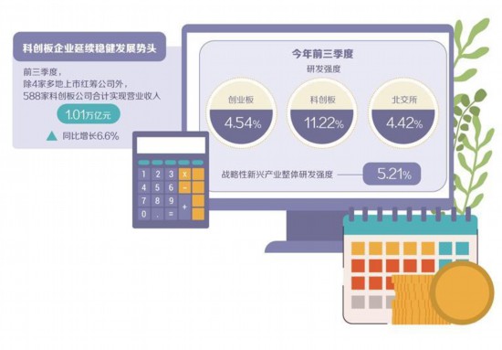 翻开A股三季报,面对更加积极有为的宏观政策落地实施、因地制宜发展新质生产力的加快推进等多重利好,以及世界经济增长动能偏弱、国内有效需求不足等多重挑战,今年以来,上市公司积极抢抓政策机遇,以技术创新破局,凭转型升级拓新,并用真金白银的回馈稳住市场信心、提振投资者预期,呈现出新兴产业与传统产业多点开花、协同并进态势。 新兴产业领跑 今年以来,A股市场“新潮”涌动,新一代信息技术、新能源、新材料等代表战略性新兴产业和未来产业的“硬科技”上市公司表现亮眼。 以科创板为例,科创板企业延续稳健发展势头,前三季度,除4家多地上市红筹公司外,588家科创板公司合计实现营业收入1.01万亿元,同比增长6.6%。 关键技术的不断突破,成为科技型上市公司业绩爆发的核心驱动力。生物医药领域,今年以来沪市公司共推动26款1类新药获批,禾元生物自主研发的重组人白蛋白注射液(水稻)获批上市,成为全球首个“稻米造血”1类创新药。高端装备领域,科德数控实现国产高端五轴机床在航空航天等关键领域的批量化进口替代。通信领域,国盾量子实现全球首款四通道超低噪声半导体单光子探测器量产,关键指标刷新世界纪录。 积极抢抓具身智能、人工智能等新风口机遇,是驱动上市公司业绩增长的另一动能。鸣志电器前三季度营业收入、归母净利润同比分别增长11.66%、5.43%,公司表示在人形机器人领域布局较多,机器人业务在前三季度保持向上势头,预计全年相关应用收入占比将进一步提升。奥比中光前三季度实现营业收入7.14亿元,同比增长103.5%,公司表示积极拥抱市场新机遇,随着各类AI端侧应用的智能化升级加速,目前已成功迎来经营拐点。 “AI算力需求旺盛、AI应用不断落地,半导体国产替代加速、存储价格持续上涨使相关领域表现强劲,传统硬件制造持续较高增长,部分软件领域盈利明显改善。”招商证券首席策略分析师张夏表示,其中,半导体、元件、光学光电子、软件开发、计算机设备等领域单季度盈利明显改善,通信设备持续出现较高增长。 研发投入的不断加码,为科技型上市公司注入强劲内生动力。今年前三季度,创业板、科创板、北交所研发强度分别达4.54%、11.22%、4.42%;战略性新兴产业整体研发强度5.21%。中润光学前三季度研发费用投入4921.13万元,同比增长50.47%,公司表示,此次研发投入聚焦新产品创新与技术突破,旨在进一步拓宽产品应用场景、增强核心技术竞争力,为未来业绩持续增长奠定坚实基础。 资本市场对科技创新的大力支持,也为科技型企业向好发展保驾护航。今年6月实施科创板“1+6”改革,设置科创成长层,引入资深专业机构投资者、预先审阅等制度试点。改革平稳推进,科创成长层未盈利企业表现突出,33家已披露三季报的公司营收同比增长35.1%,净利润同比减亏45.4%,彰显出成长潜力。 “新质生产力相关行业增速较高,原因在于宏观经济出现回升,同时,在资金投入和市场需求提升的双重推动下,许多科技创新型企业经营状况明显改善,转型发展趋势愈加明显。”前海开源基金首席经济学家杨德龙表示。 传统产业焕新 新兴产业蓬勃发展,传统产业也在求新求变、提质增效,从前三季度情况来看,一些传统优势赛道保持活力。 凭借升级新技术、创造新场景、布局新应用,部分传统企业打开新局面。美的集团前瞻布局智能家居,今年前三季度智能家居业务收入同比增长13%。赛力斯抢抓智能出行,前三季度新能源汽车累计销量达30.46万辆,问界系列持续迭代升级,为用户带来智慧出行体验。福达合金积极拓展新应用场景,电接触材料在数据中心、汽车以及储能领域应用均有不错表现,前三季度公司营业收入、归母净利润同比增长均达30%以上。 不少企业向智向绿,转型升级步伐加快。电力行业的国电南瑞、四方股份、平高电气等公司在继电保护、特高压开关等环节取得突破,为能源系统绿色转型提供支撑,拉动高附加值产品线净利润增长。风电装备行业聚焦大型化、智能化,明阳智能中标的16MW以上海上风机订单容量占比突破30%。基础化工行业探索绿色循环路径,桐昆股份构建从能源到化纤的内部循环产业链,通过产线智能化降低能耗,前三季度净利润同比增长54%。 还有企业积极走出去,出海表现突出。上海电气交付全球首台ITER磁体冷态测试杜瓦,电气风电中标多个海外项目,推动风电产业全球化。中材国际海外订单实现高增长,今年前三季度公司境外新签合同合计达413亿元,同比增长37%。比亚迪出海业务全面开花,实现跨越式增长,今年1月至10月海外乘用车及皮卡销售78.5万辆,同比增长135%。 此外,反“内卷”促进产业格局优化,传统重点行业重塑供需平衡。钢铁行业稳产能与调结构并举,南钢股份高端钢材销量比重稳步提升,多项精品钢产品应用于国际重点项目,毛利率同比提升1.91个百分点;山东钢铁借助宝武平台推进聚量采购,购销差价持续改善,第三季度净利润创近11个季度单季新高。水泥行业积极落实错峰生产,产品价格修复改善,海螺水泥、华新水泥受益于产品价格上涨以及成本下降,前三季度净利润同比增长21%、76%。 “在反‘内卷’政策推动下,市场供需格局持续优化,工业品价格呈现企稳回暖迹象,钢铁、有色等部分资源品价格维持强势。”张夏表示,往后看,随着加快实现高水平科技自立自强和反“内卷”政