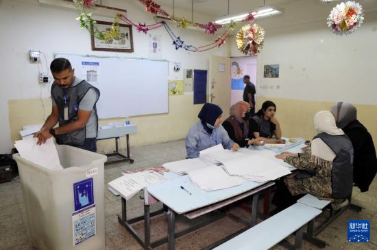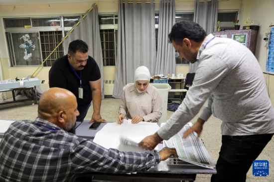11月11日,工作人员在伊拉克巴格达一处投票站内清点选票。新华社发(哈利勒·达伍德摄) 此次选举是2003年伊拉克战争后举行的第六次国民议会选举。选举于当地时间11日18时结束,初步结果预计于投票结束24小时内公布。