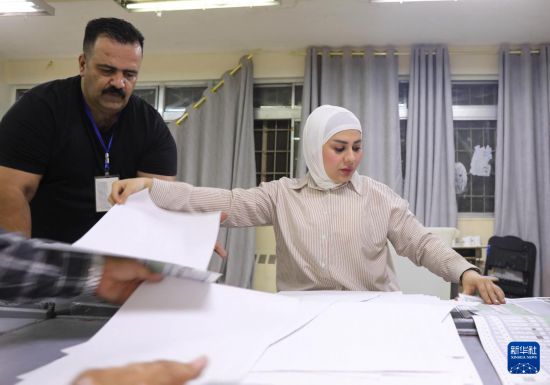 11月11日,工作人员在伊拉克巴格达一处投票站内清点选票。新华社发(哈利勒·达伍德摄) 伊拉克总理苏达尼当晚发表声明说,国民议会选举的组织和实施符合宪法和法律规定。他重申,新一届政府的组建将基于伊拉克人民的自由选择。