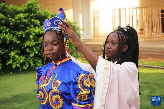 11月8日,在贝宁经济首都科托努举行的“中国贝宁服装秀”活动中,阿波美卡拉维大学孔子学院学生在穿戴中国传统服饰。新华社发(塞拉芬摄) 贝宁文化推广人埃策希尔·多洪格说,设计师们的作品展示了“时尚是一种能够连接不同文化、丰富身份认同的通用语言”,让贝中两国民众在欣赏美的同时,体验文化多样性的魅力。