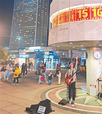 德国首都柏林以多元文化著称,艺术生活是该市“夜经济”中最为重要的一环。图为柏林亚历山大广场世界钟下,街头艺人正在纵情高歌。 本报欧洲中心分社 肖 晶摄 |
