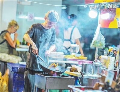 泰国曼谷唐人街是当地最繁华的商业区之一,这里的夜市吸引了大量当地居民和外国游客。图为一家小店的厨师正在烹饪菜肴。 本报亚太中心分社 普拉维摄 |