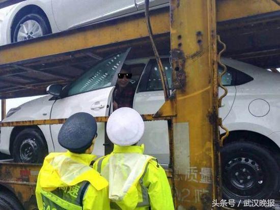 接警后高警长阳大队民警余智、赵欢迅速赶赴现场。发现一身着长袖衬衣和浴巾的光脚男子坐在挂车运载的小车内。余智发现发现该男子行为古怪、精神恍惚。